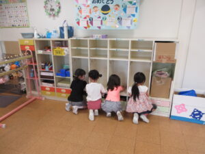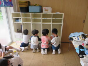 幼稚園でお仕事をがんばっている子ども達です。夏休みには、おうちでもお仕事を何か手伝ってねと声をかけましたの。お子様とご相談の上、ぜひ何か役目を果たせるように応援してあげてください。