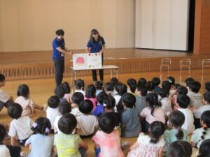 くだものがクイズになっている絵本は、どの学年も子ども達が元気な声で答えていました。集中する時は静かにおはなしを聞いて、盛り上がる時は元気よく反応していました。
