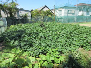 5月に植えたサツマイモはツルが元気に伸びています。これからますます大きくなることでしょう。10月の収穫、11月の焼き芋パーティーが今から楽しみです。