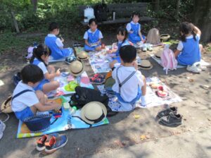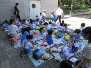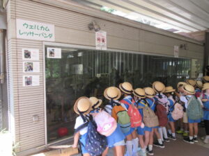 快晴に恵まれたとはいえ、暑い!一日でした。動物園に着いたら、学年ごとに分かれて見学しました。ほとんど歩きっぱなしでしたが、いろいろな動物を見るのが楽しくて、元気な子ども達でした。かわいい小動物から、キリン・シマウマなど見ごたえのある大きな動物まで、来ていた団体の数も少なく、のんびりじっくり見ることができました。