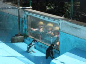 遠足に行く前に、どんな動物がいるか、先生達が示してくれた写真を見ながら、ワクワクして今日の日を待っていました。年長さんは、行きのバスの中で出席を取りながら、「今日、楽しみなこと」を一言ずつ発表していました。「みんなでお弁当を食べること」「ペンギンが楽しみです」「キリンさんを早く見たい」「おやつが楽しみ」などいろいろな楽しみがいっぱいありました。