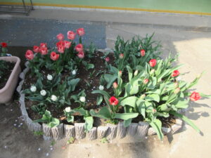年長さんともあと少しでお別れです。今までいっしょに遊んでくれてありがとう。いろいろな花が咲き始め、新しい出発をお祝いしているようです。また一つ、楽しい思い出が増えましたよ!